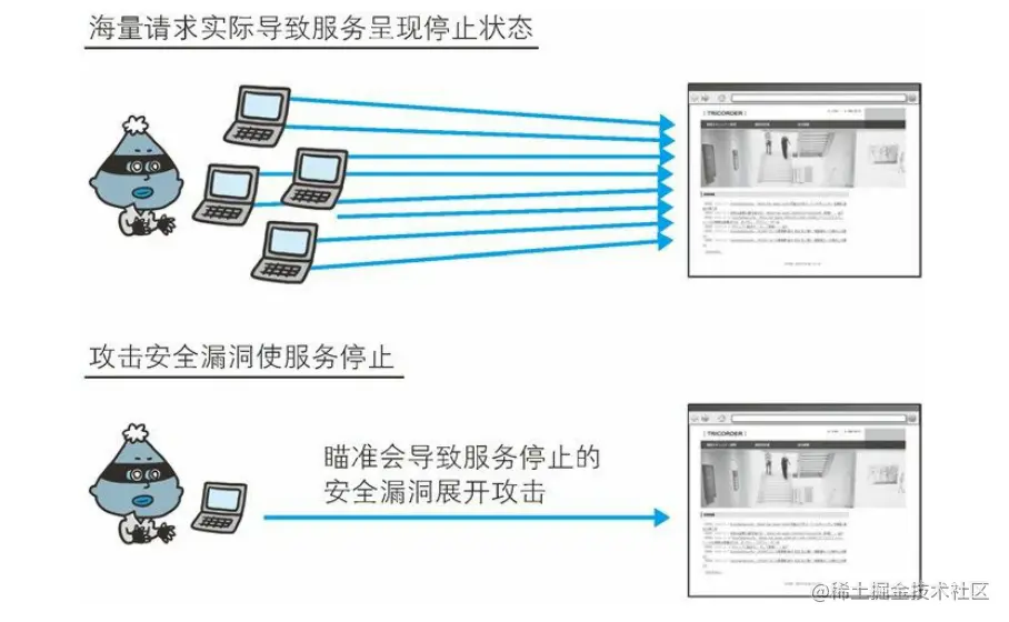 其中,集中利用访问请求的 DoS 攻击,单纯来讲就是发送大量的合法请求。服务器很难分辨何为正常请求,何为攻击请求,因此很难防
