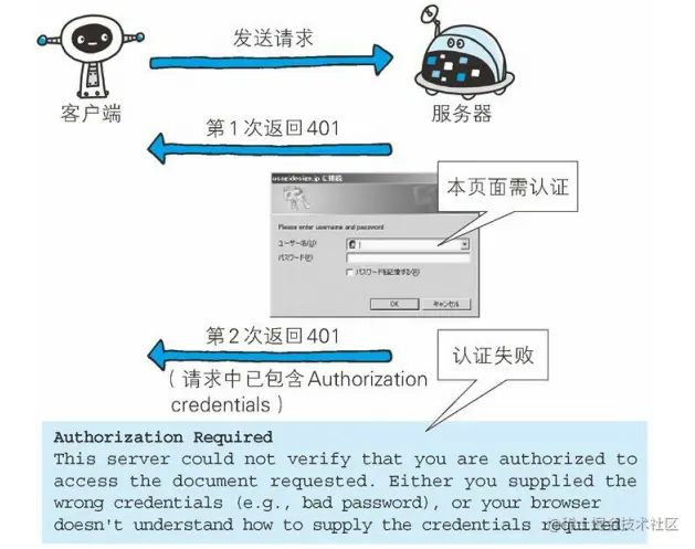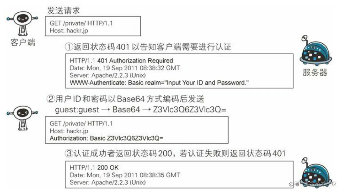 步骤 3: 接收到包含首部字段 Authorization 请求的服务器,会确认认证信息的正确性。认证通过后则返回包含 Request-URI 资源的响应。