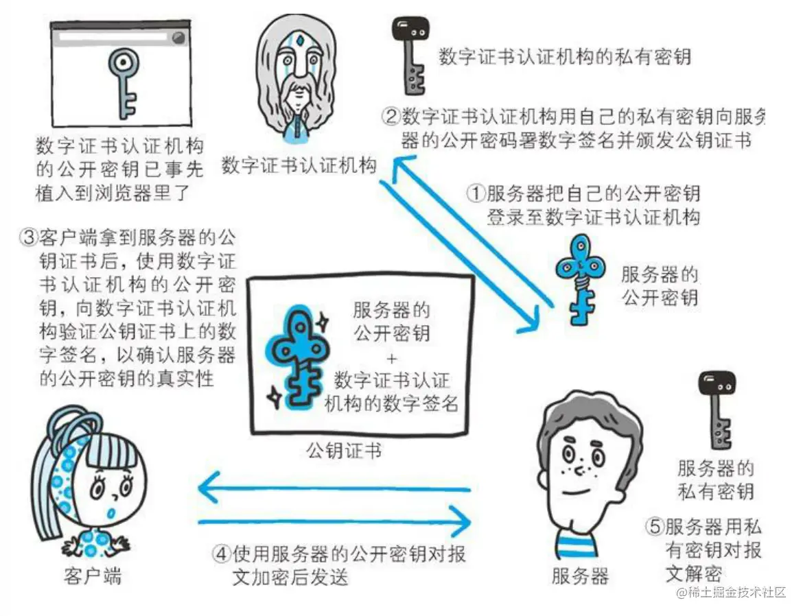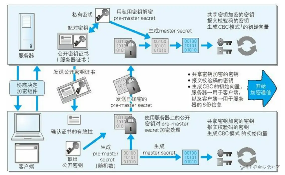步骤 3: 服务器验证客户端证书验证通过后方可领取证书内客户端的公开密钥,然后开始 HTTPS 加密通信。