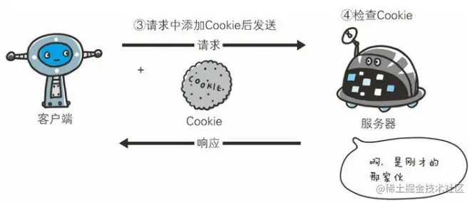 Cookie 会根据从服务器端发送的响应报文内的一个叫做 Set-Cookie 的首部字段信息,通知客户端保存 Cookie。当下次客户端再往该服务器发送请求时,客户端会自动在请求报文中加入 Cookie 值后发送出去。