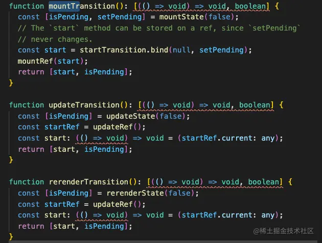 过渡即为处理页面上从一个状态到另一个状态或者从一个页面到另一个页面,实现平缓的处理,源码实现上结合来useRef+useState解决pending状态值变更。