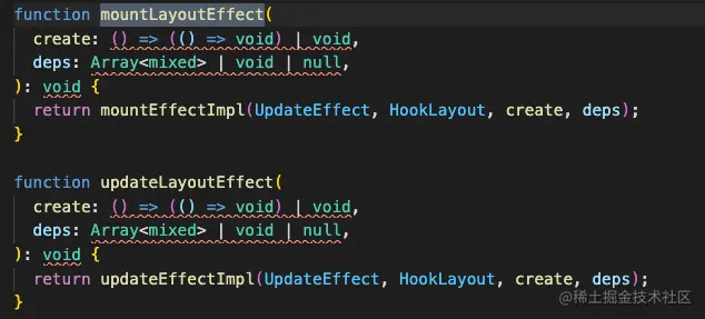 从return的mountEffectImpl和updateEffectImpl和useEffect类似。唯一的区别在于第二个参数hookLayout,所以可以把useLayoutEffect理解为useEffect+dom处理。