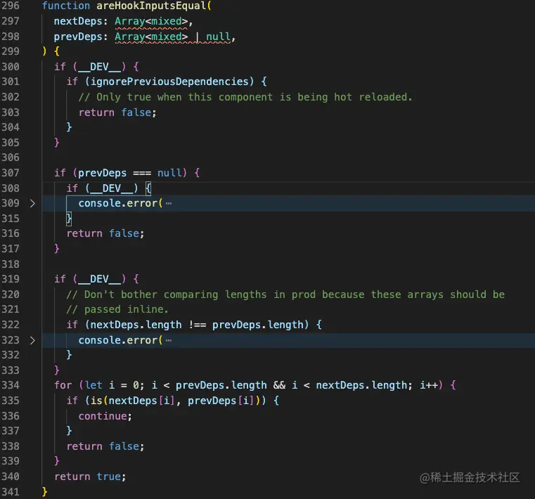areHookInputsEqual会在其它的api处多次出现。正如函数字面意思先前状态和现有状态循环比对,相同则为true