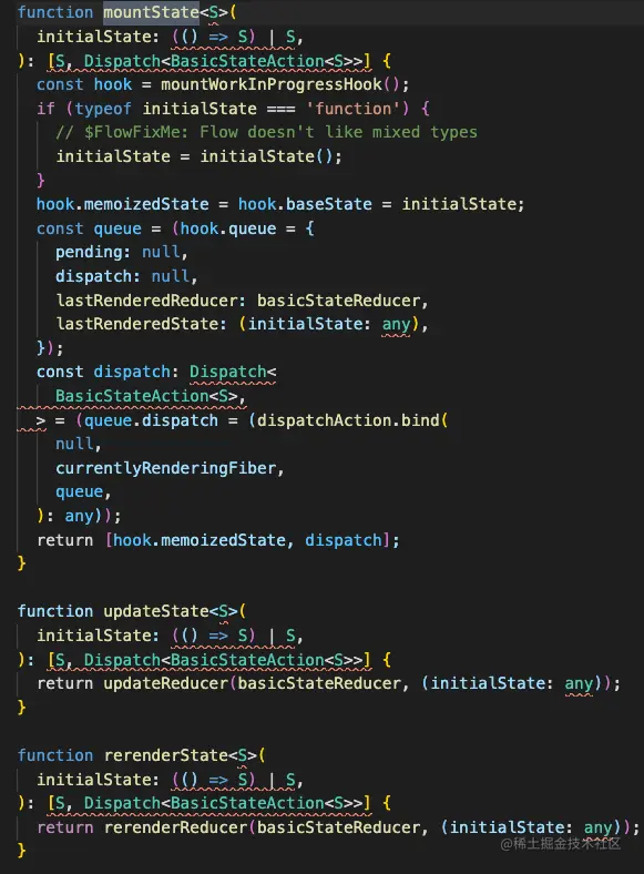从源代码可以看出和useReducer有千丝万缕的联系,或者可以理解为useState是useReducer的mini缩小版本,将useReducer精准拆分。所以在实现上有更大的灵活性