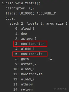 我们可以发现,sync代码块在反编译中被加入了monitorenter和monitorexit两条指令,执行monitorenter的时候会在前面提到的Monitor源码中_recursions字段加一,且 _owner字段修改为当前线程,当执行monitorexit指令时 _recursions字段减一