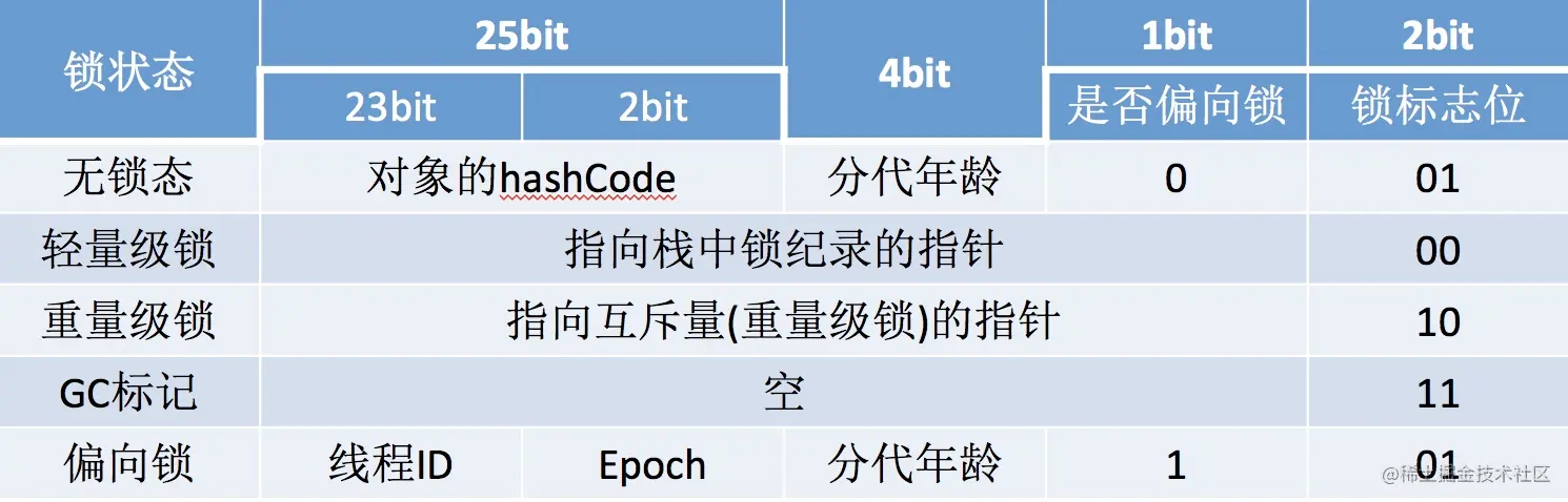 在无其他线程竞争的情况下,对象头里包含对象hashCode信息、分代年龄、是否是偏向锁、锁标志位。