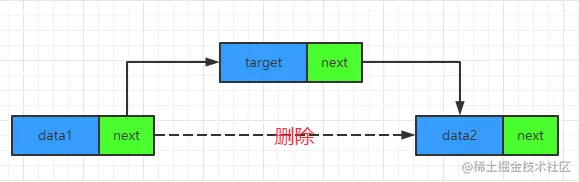 - 实现插入操作时,需要先将target的next指向data2,然后再将data1的next指向target,不然会出现指针丢失的问题
