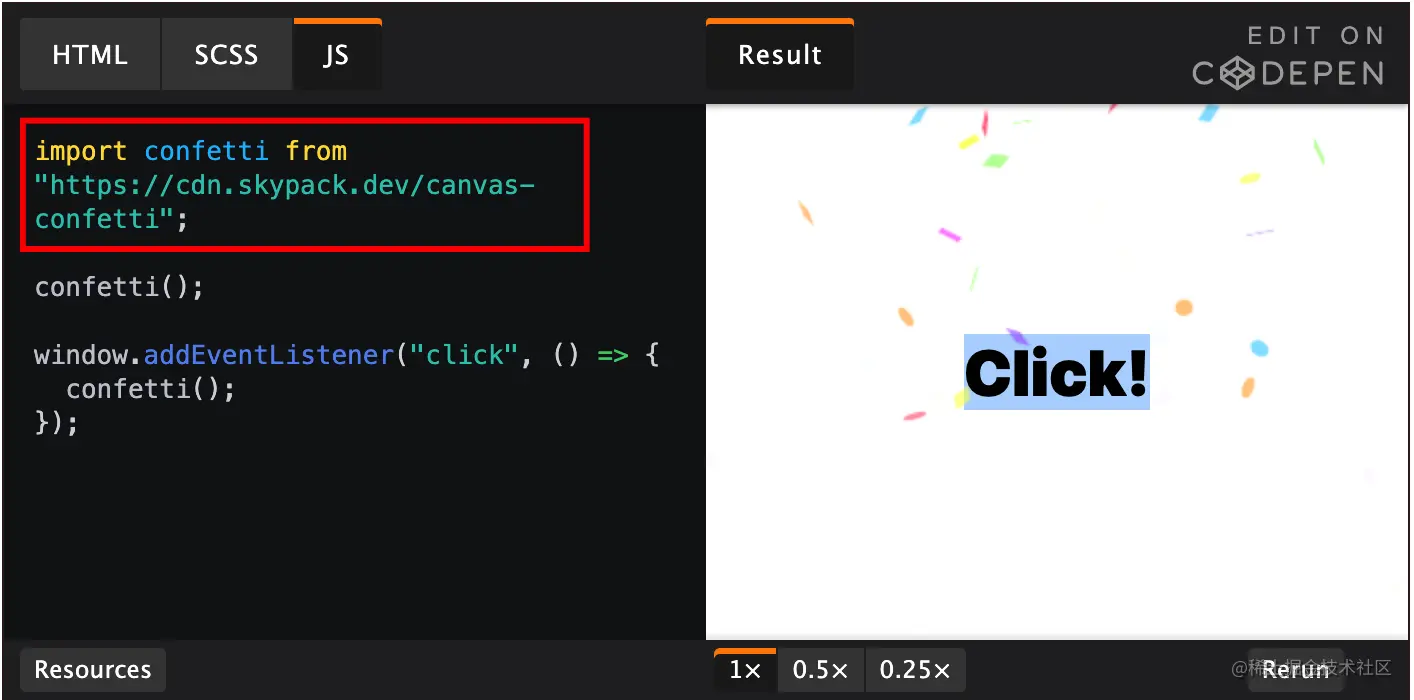 CodePen 编辑器支持 Skypack 这种形式的引入了,真酷!