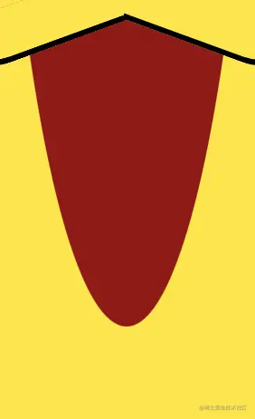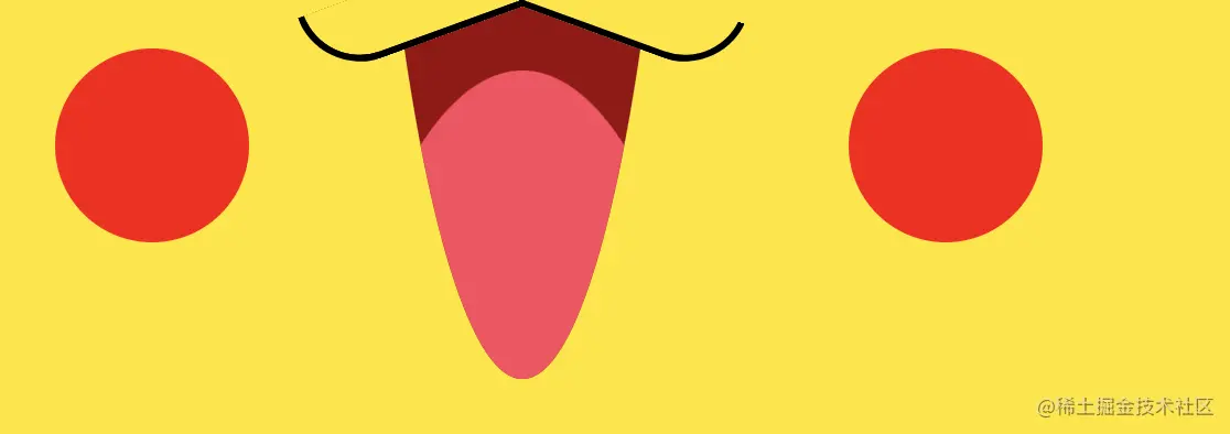 实现上嘴唇的思路是,首先使用两个div画出边框,然,后透明掉它们的上边框以及右边框,接着使用border-radius加上弧度,使它看起来有笑脸的感觉,接着使用transform旋转。 值得注意的是两边嘴唇弯曲弧度的部分与旋转角度是相对的。