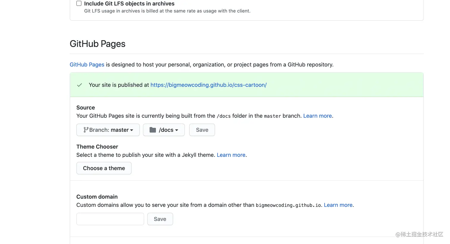 最后就可以把作品打包然后发到github page上了,在github的setting中可以进行设置