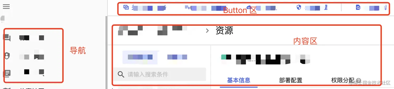 - Button 组件的渲染结果还受内容区中当前活跃Tab(基本信息、部署配置、权限分配)页的不同而不同