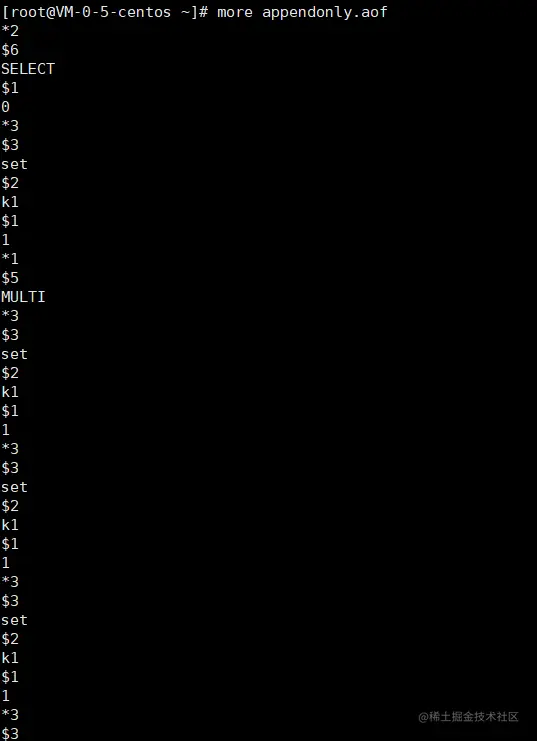 AOF 文件重写并不是对原文件进行重新整理,而是直接读取服务器现有的键值对,然后用一条命令去代替之前记录这个键值对的多条命令,生成一个新的文件后去替换原来的 AOF 文件。也就是说若服务器中有一条key为k1,val为1,不管前面针对这个key执行了多少命令,只保存现有的命令。