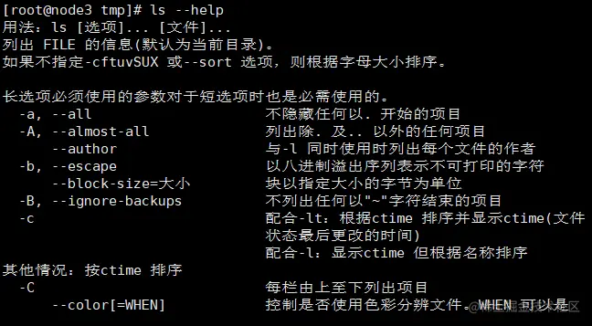 三、获得命令的中文帮助信息:--help