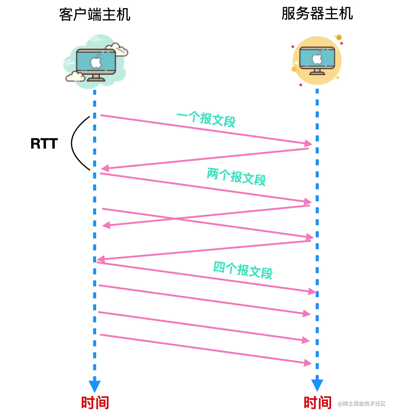 - 一个确认报文段指示发送方正在向接收方传递报文段,因此,当对先前未确认报文段的确认到达时,能够增加发送方的速率。为啥呢?因为未确认的报文段到达接收方也就表示着网络不拥堵,能够顺利到达,因此发送方拥塞窗口长度会变大,所以发送速率会变快