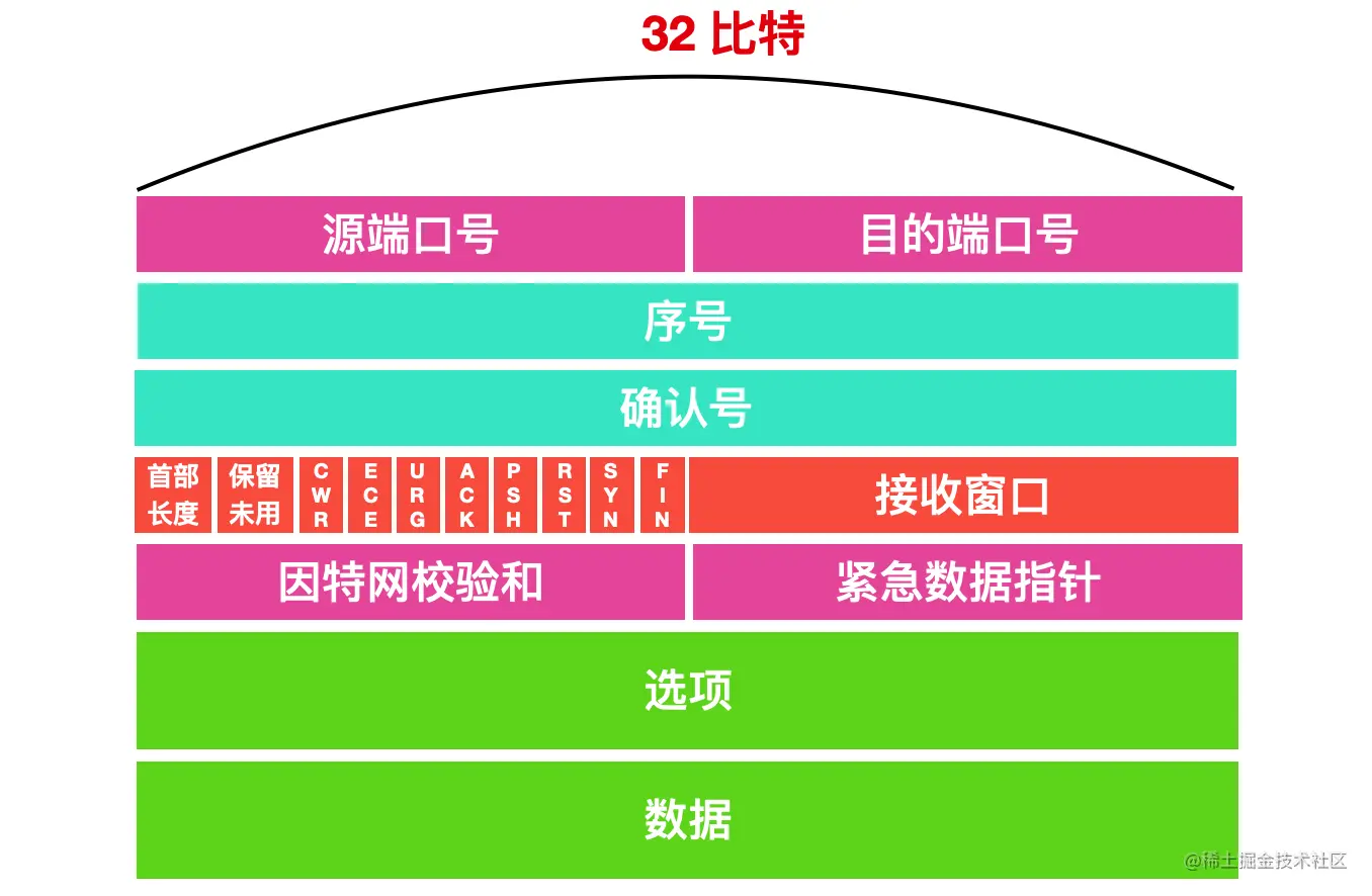 在数据传输到运输层后,会为其附上 TCP 首部,首部包含着源端口号和目的端口号。