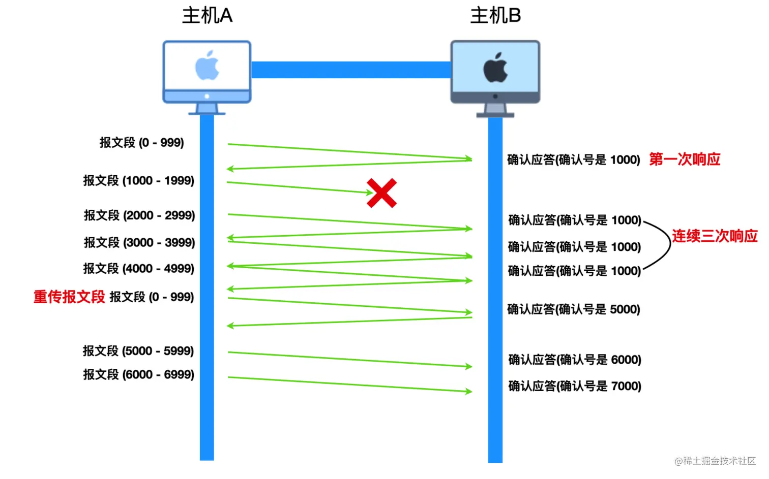 这个我们上面讨论过,是 TCP 根据超时或者 3 个冗余 ACK 来感知的。