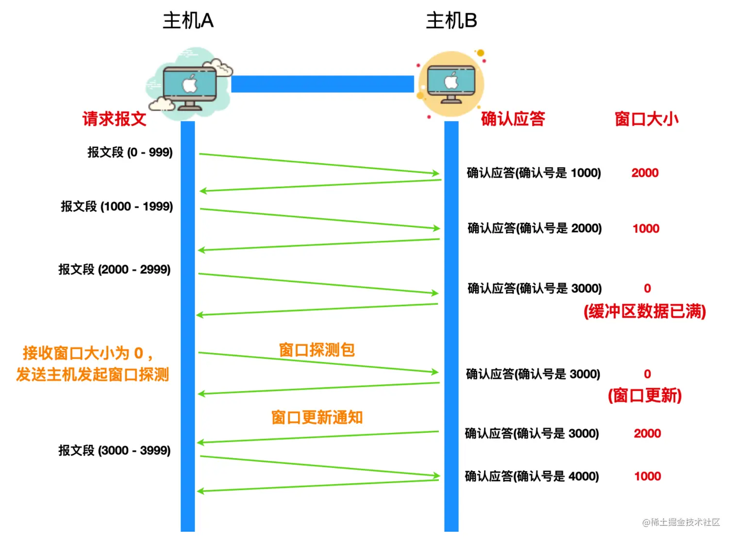 - 如果在报文段发送过程中丢失,那就意味着网络拥堵,此时需要适当降低 TCP 发送方的速率。
