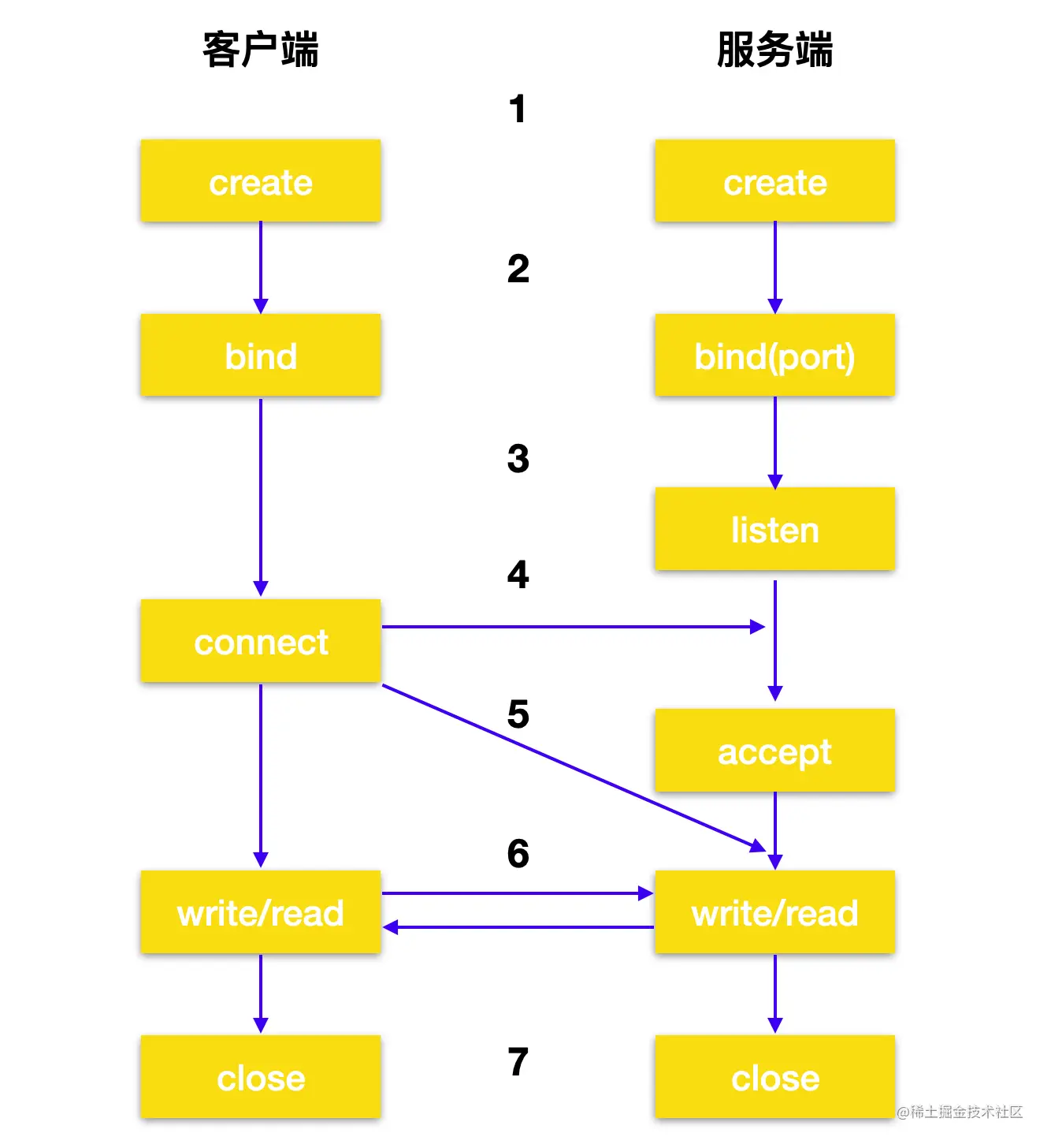 acceptAPI 接受客户端连接请求,服务器必须先成功调用 bind 和 listen 后,再调用 accept api。 - 在流套接字之间建立连接后,客户端和服务器就可以发起 read/write api 调用了。