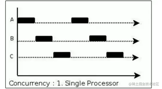 - 并发不是真正意义上的“同时进行”,只是CPU把一个时间段划分成几个时间片段(时间区间),然后在这几个时间区间之间来回切换,由于CPU处理的速度非常快,只要时间间隔处理得当,即可让用户感觉是多个应用程序同时在进行。