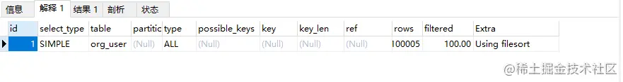 假设存在 org_user 表,没有设置主键,也没有设置索引: