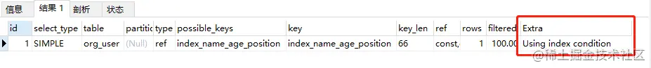 EXPLAIN SELECT * FROM `org_user` where age = 24 AND position = '前端开发';