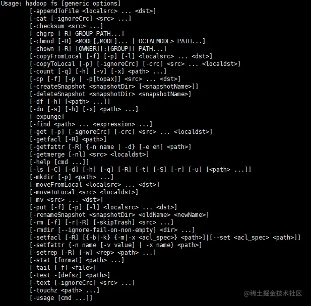 通过hadoop fs 可以查看相关命令