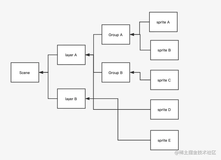 Sprite为图形创建类似于DOM的对象模型,因此我们可以像创建DOM元素一样,创建Sprite元素,并将它们append到layer上,从而将元素呈现到画布上。