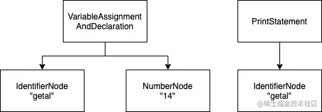 这些都转化为两个ProgramNode的。PrintStatement(expression: IdentifierNode(getal))和VariableAndAssignmentDeclaration(identifier=IdentifierNode(getal), expression=NumberNode(number=14))