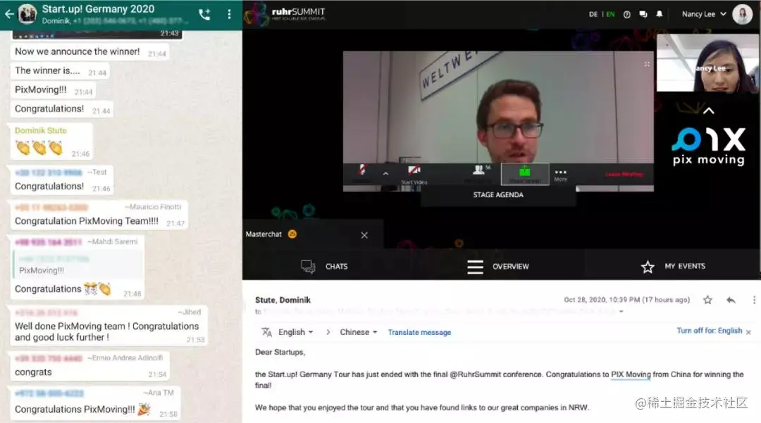 2020年9月,PIX受RuhrSummit峰会邀请参加2020德国数字创新之旅,并于10月28日从450+startup中脱颖而出,经过多轮淘汰晋级,最终获得Digital International Pitch Final的全球第一名。