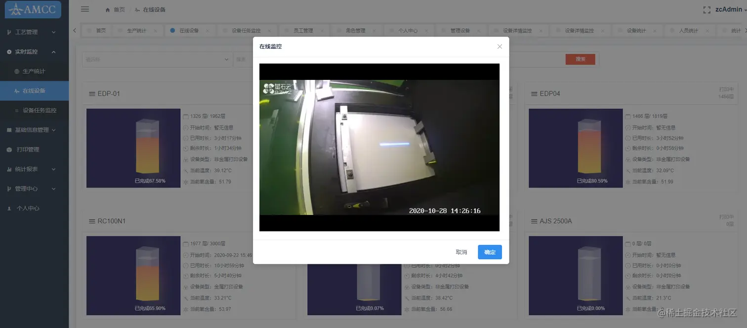 目前增材智能车间平台已经建成并实现设备接入网联筑梦 3D 打印云服务平台 ,实现了 3D 订单管理、任务管理、排产管理、在线监控、移动监管、数据采集等目标。后期计划接入相关检测设备。