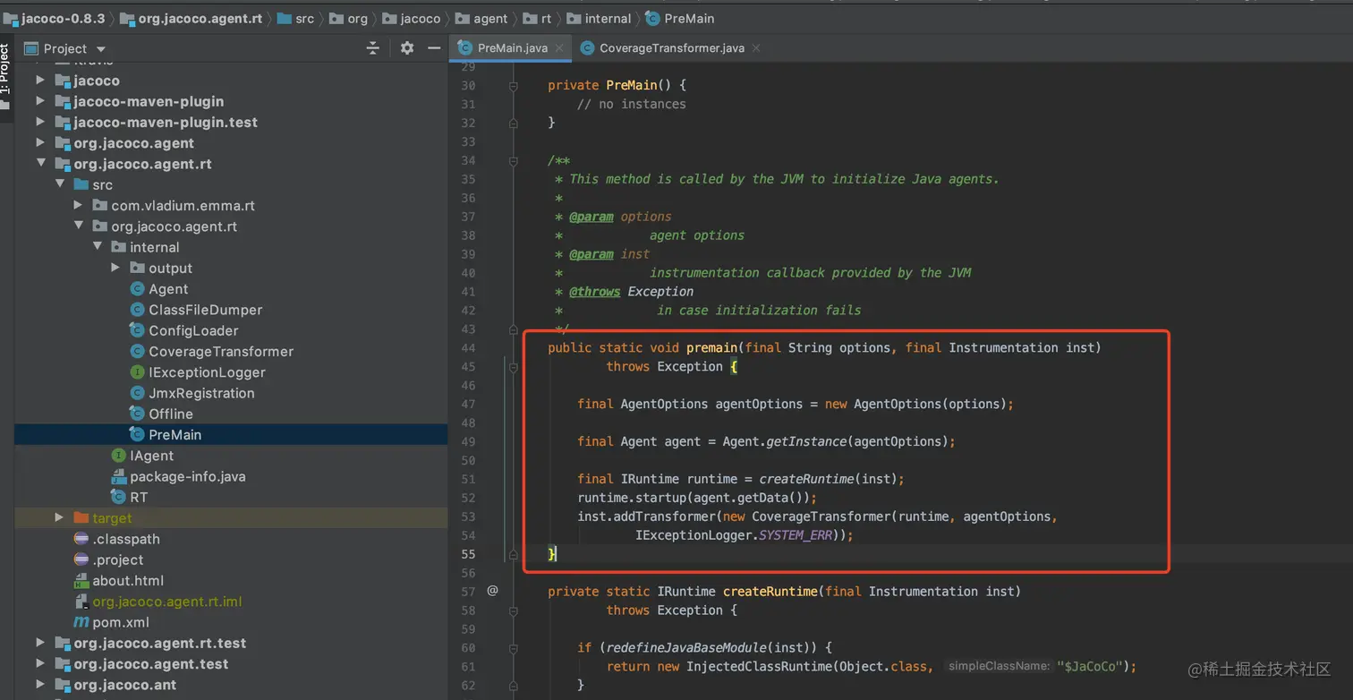 3. jacocoagent.jar包中Premain-class配置和入口类
