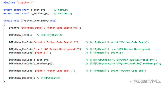 Txt2Str 将 Python 代码用 C 字符串的形式存储到 C 文件中(如上图中的 test.c) 将转换得到的 C 文件加入工程中即可在 C 代码中使用 Python 代码(可参考文末附件中的示例)
