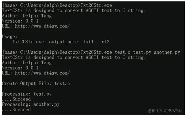 2、【可选】编写 Python 代码(目前未提供任何库支持),并使用文末附件中的 Txt2Str 工具将其转换为 C 字符串,用法如下: