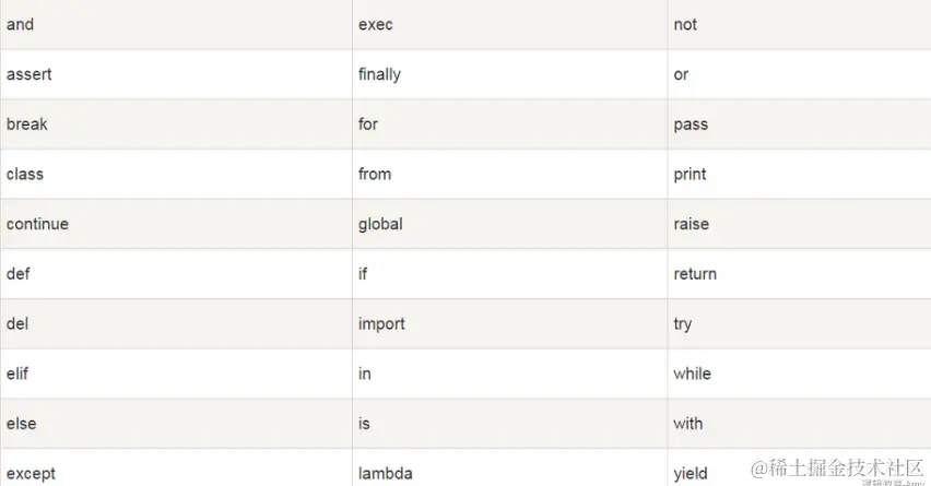 Python的标准库提供了一个 keyword 模块,可以输出当前版本的所有关键字