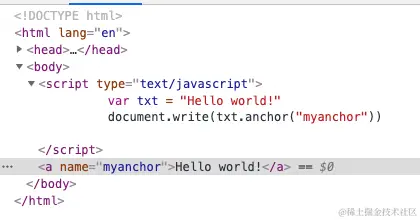 <script type="text/javascript"> var txt = "Hello world!" document.write(txt.anchor("myanchor")) </script>- 在图片中看到生成了一个