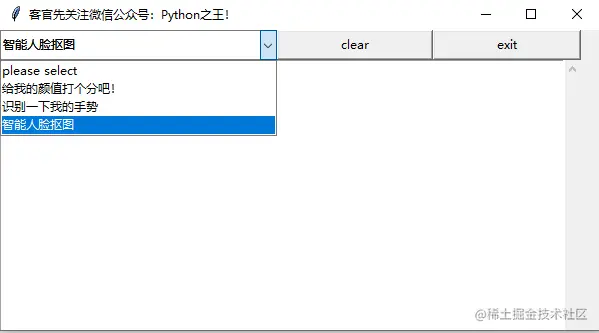 numberChosen['value'] = ('please select', '给我的颜值打个分吧!', '识别一下我的手势', '智能人脸抠图')