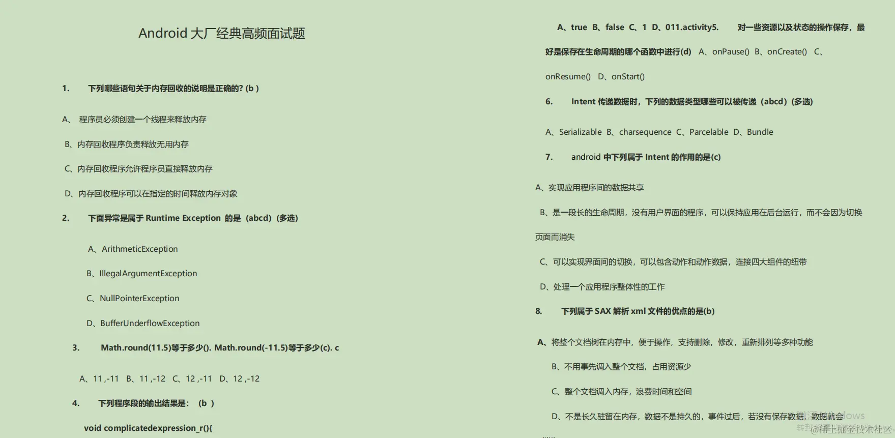 PS:之前因为秋招收集的二十套一二线互联网公司Android面试真题 (含BAT、小米、华为、美团、滴滴)和我自己整理Android复习笔记(包含Android基础知识点、Android扩展知识点、Android源码解析、设计模式汇总、Gradle知识点、常见算法题汇总。)
