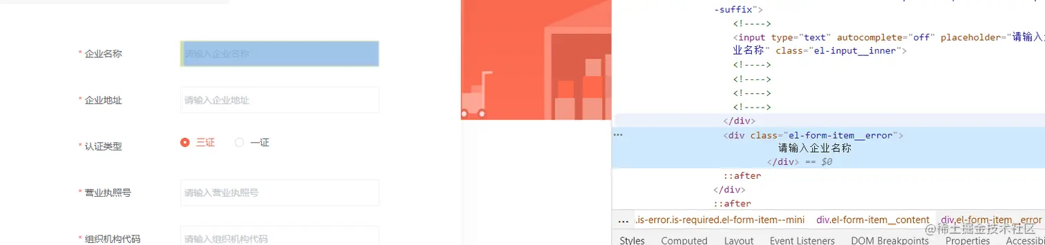 el-form表单校验时的错误提示不显示问题 初学求学者 2020-11-30 2,717 阅读1分钟 使用必填字段校验时,在控制台中能够看到存在校验提示,但是在页面中却没有显示出来. 百思不得其解,后来发现是因为在表单布局时使用了flex布局,而在 .el-form-item__error中继承了display:flex这一属性,因此需要重新将display设置为block .el-form-item__error { display: block !important; } 至此,问题解决.
