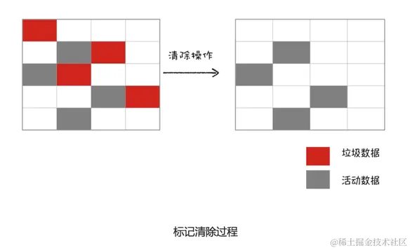 它和副垃圾清除过程完全不同,它是将标记为垃圾数据的数据清除掉。