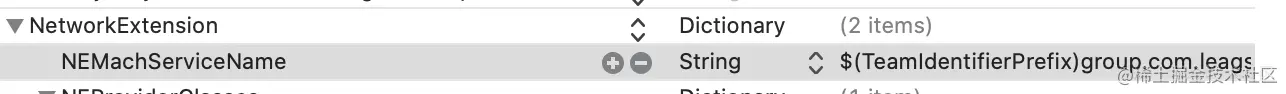 具体需要系统扩展工程Info.plist中配置NEMachServiceName字段来用于XPC服务,具体字段如下: