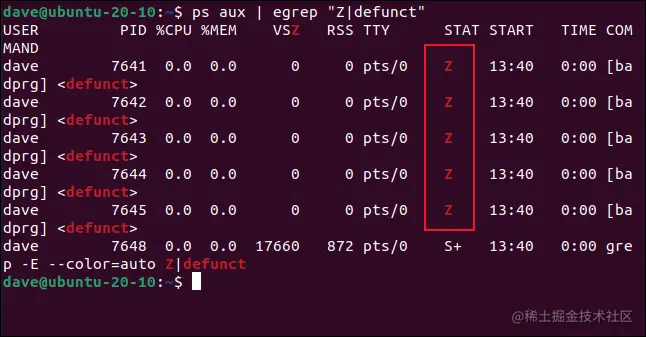 ps aux | egrep“ Z |已终止”