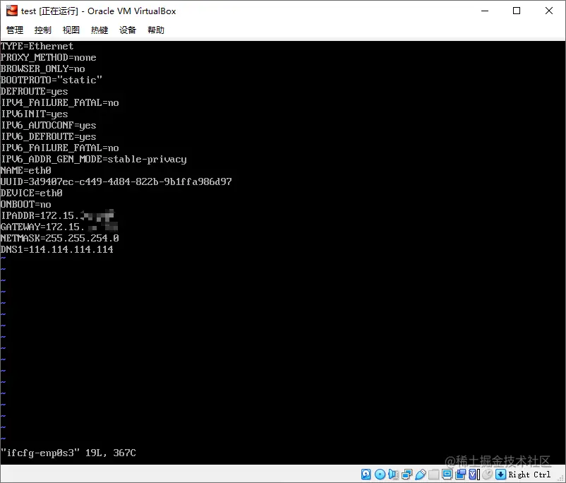 而虚拟机中的 IPADDR 可以根据 IPv4 地址自己写一个新的 IP 地址,作为虚拟机地址,只要保证和 Win10 在同一网段就行。