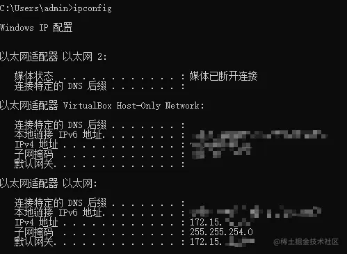 可以利用 cmd 输入下面命令查看自己电脑的 IP、网关等信息: