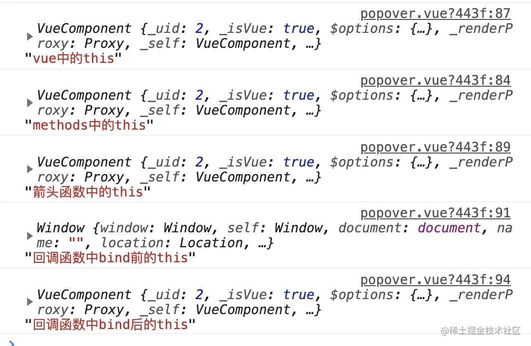 总结:除了回调函数中的 this ,其它地方的 this 均指向 Vue 实例
