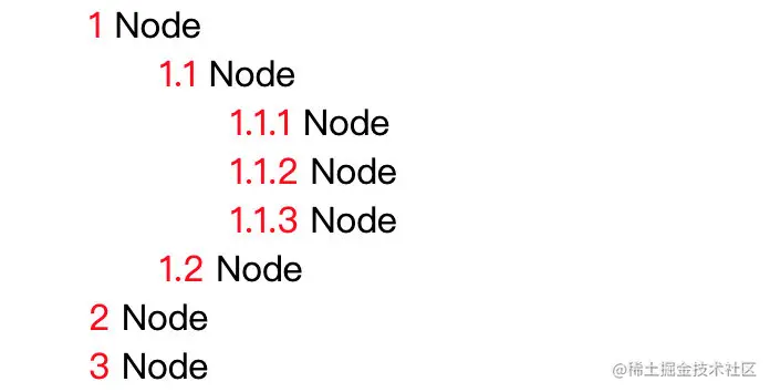 作为一个文档的目录,大批量的数据可能会从服务器请求过来,生成大量的 DOM 节点。常见的处理一般是在循环增加新节点的同时,可能会增加一个类似 <li><span style="color:red;">1.1.1</span><a href="">Node</a></li> 这样的元素。这个时候我们需要去拼接字符串以及循环的索引值,生成 1.1.1 这个号码。