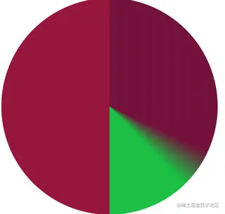 下面就是第三种渐变函数——圆锥渐变。圆锥渐变和径向渐变的不同之处在于颜色是绕着圆进行旋转。因此经常用来创建圆形进度条,画一些圆形的效果动画等等。然而圆锥渐变相比较上面两种函数,兼容性并不乐观,只有各个浏览器的较新版本才可以支持它。