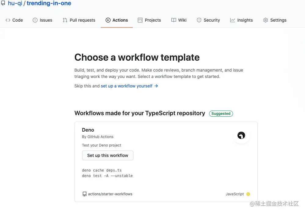 当然,如果想直接开干的话,可以在仓库的 Action 选项卡中获取到 github 提供的温馨建议。少年,亮剑吧!