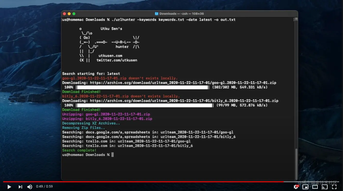 New urlhunter 允许你检索短链接服务,例如 bit.ly 和 goo.gl 来获取私密信息。示范用例:针对网络情报和漏洞,例如: