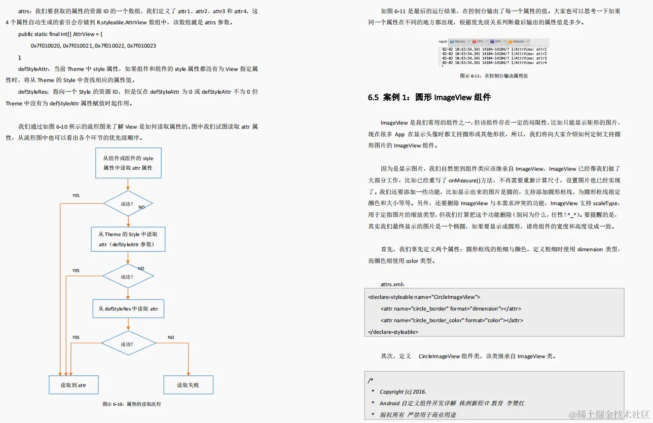 第一次接触图形界面(GUI)的开发,很难想象展现在眼前的各种五花八门的组件是开发人员和美工通力合作共同付出的结果。开发平台成套定义出各类组件供我们使用,风格、色调、观感等外观表现等需要高度和谐统一,又要从技术上为用户ᨀ供一致的操控体验,这是一件繁重的工作,马虎不得。特别是手机 App,离用户眼睛的距离更近,可能一个像素就会影响用户的使用感受,因此对界面ᨀ出了更高的要求,所以,自定义组件成了 Android 开发人员掌握的一门必备技能。