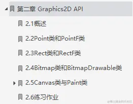 在 Android 中,2D 图形由 Android SDK ᨀ供,本章我们将向大家介绍 Graphics2D 涉及到的常用类,如基本的数据结构类、位图类、绘图类等,并介绍和使用常见的绘图方法。